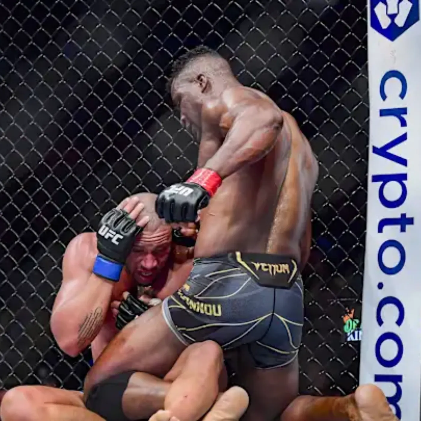 Ngannou did not rush recklessly. He maintained composure, delivering measured power shots through openings in the guard. Each impact further eroded Gane’s stability. The dismantling was systematic, almost clinical in its brutality.