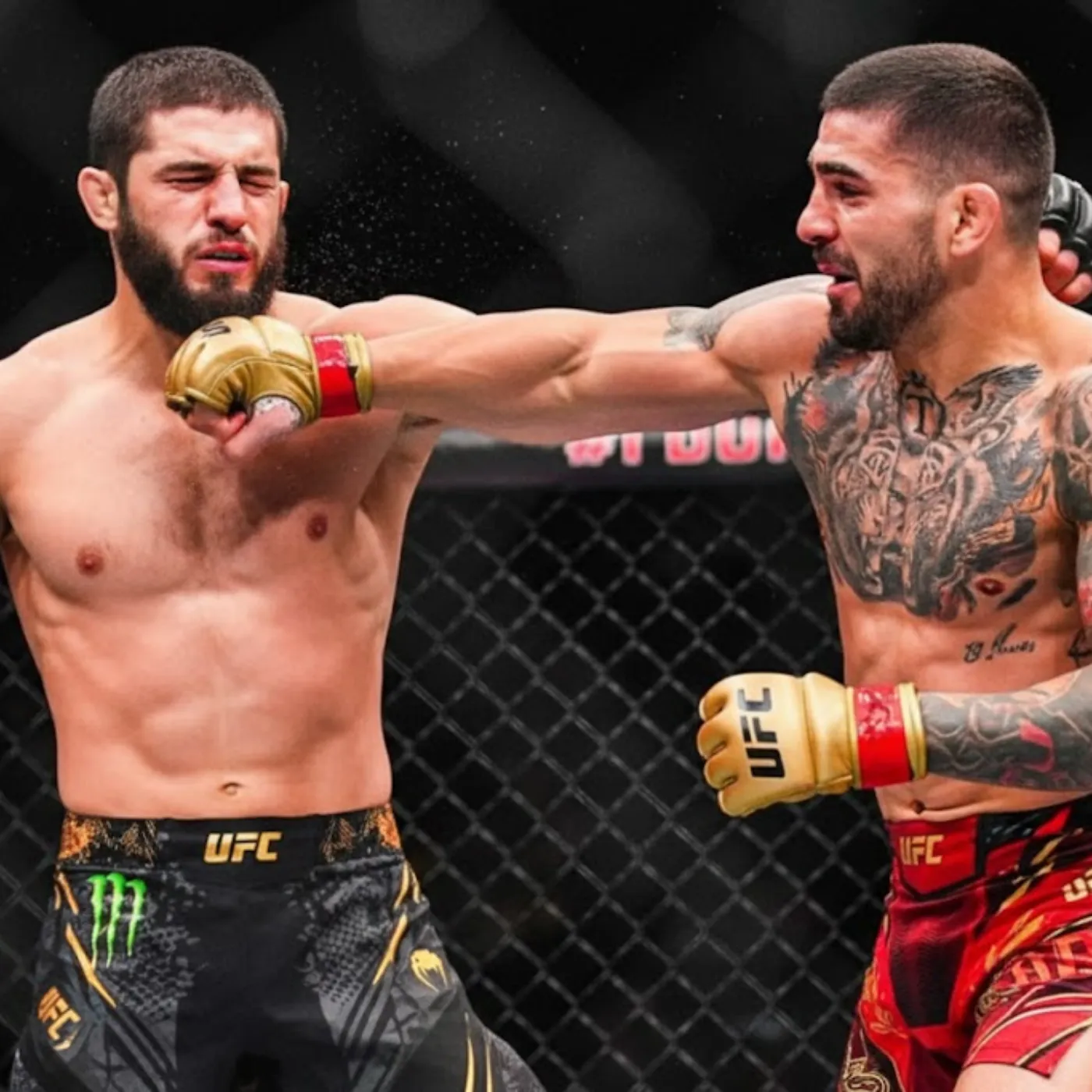 Makhachev, accustomed to opponents retreating under his pressure, found himself adjusting. His attempts to establish control were met with sharp counters and relentless forward movement. Topuria did not look intimidated. On the contrary, he looked prepared, as if he had visualized this exact scenario countless times.