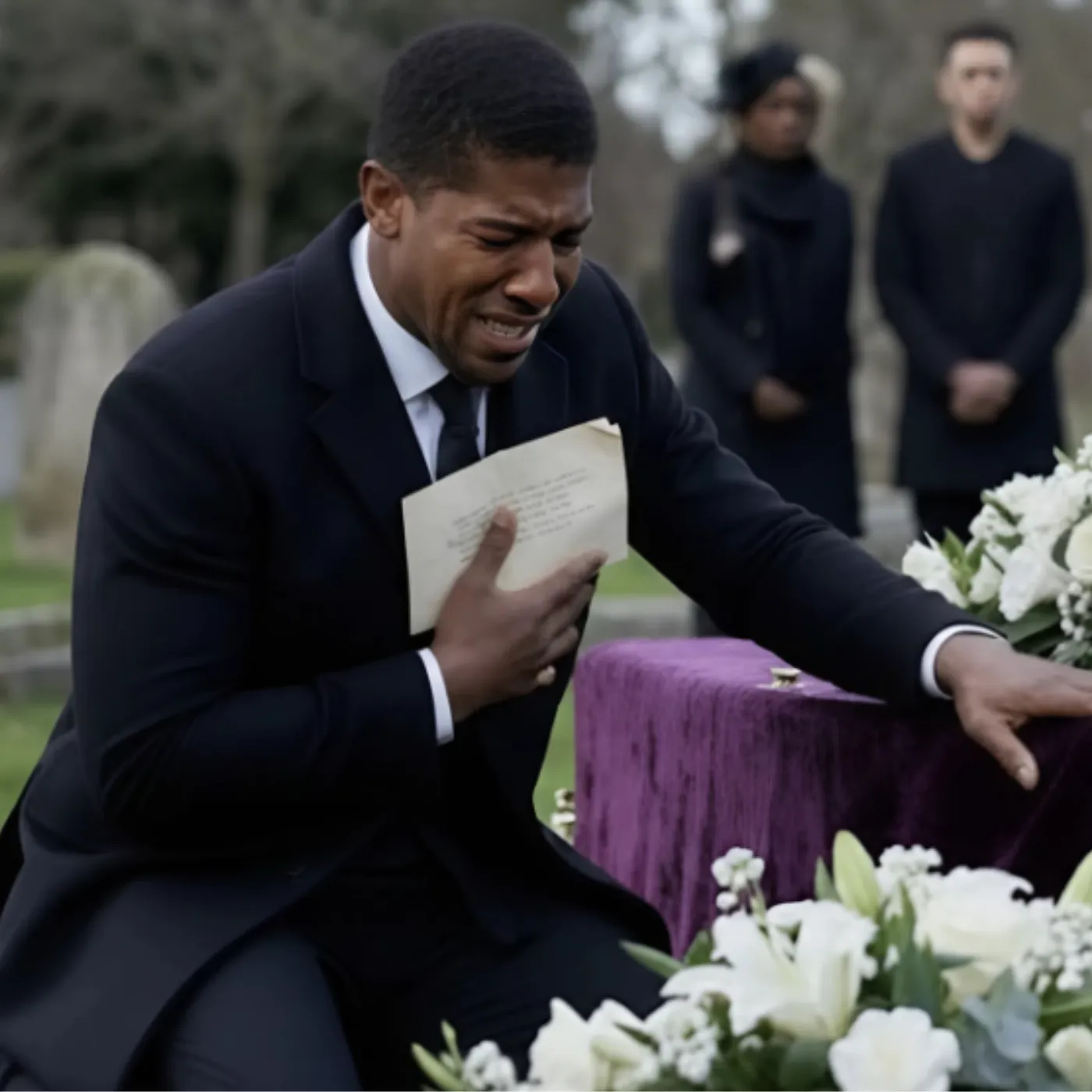 The cemetery visit, which lasted over an hour, was captured on video by a bystander who happened to be nearby. The footage, which has since gone viral on social media platforms, shows Joshua arriving in a black SUV, dressed in somber attire—a stark contrast to his usual flashy boxing gear. He approached the grave marker, adorned with flowers and mementos from Ayodele’s loved ones, and began his ritual of kneeling.