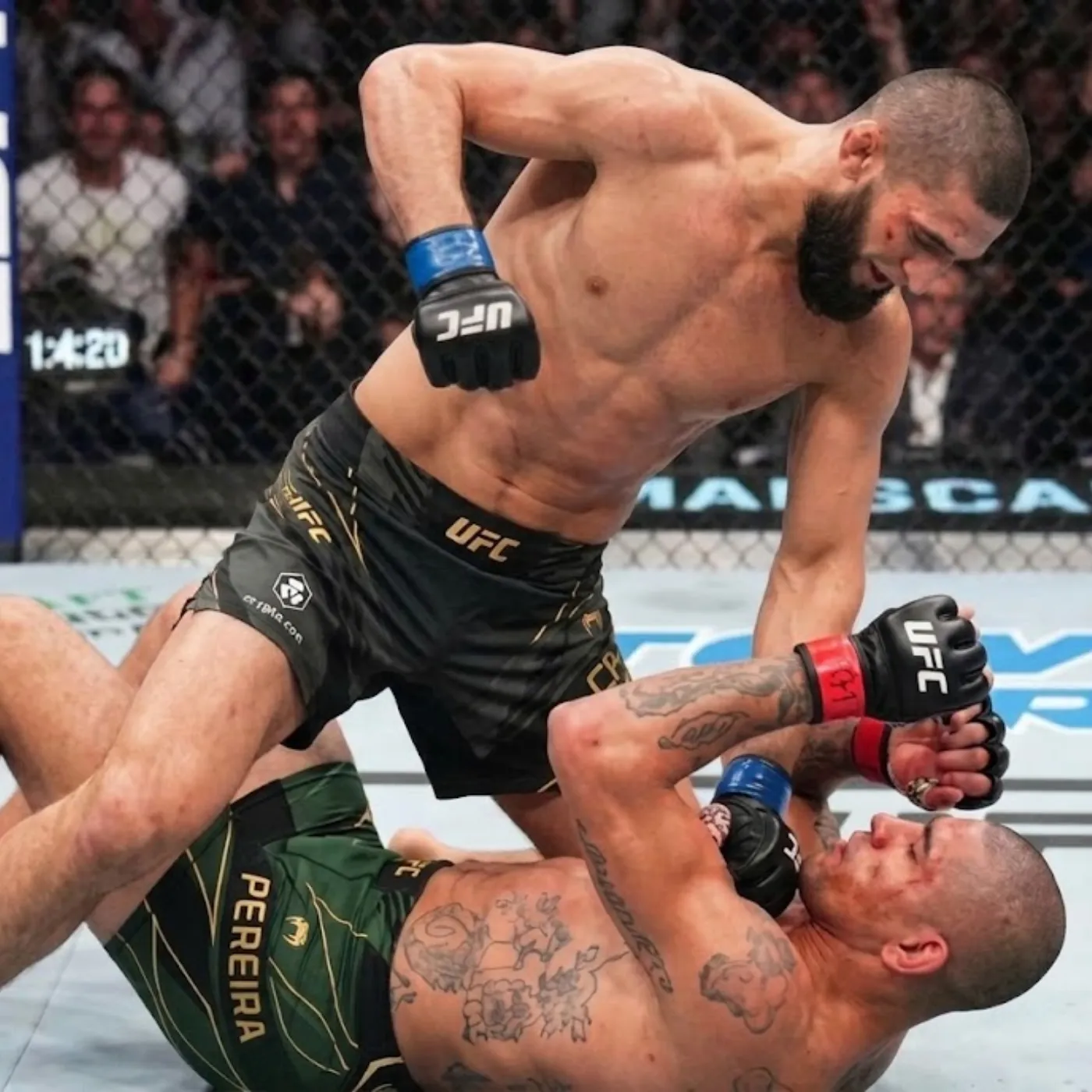 There were moments where Pereira found openings. A sharp counter here, a well-timed kick there. Each successful strike reminded everyone why he was considered one of the most dangerous strikers in the sport. But Chimaev absorbed the shots and kept coming forward, unfazed, almost daring Pereira to throw more.