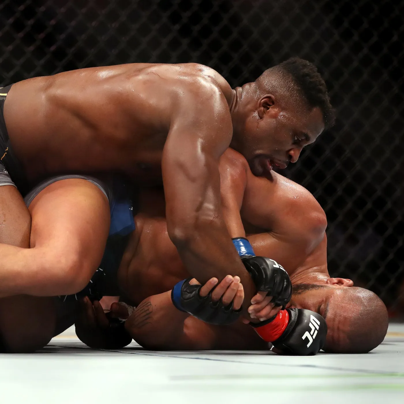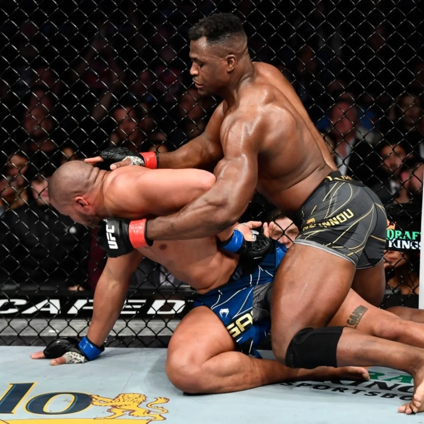 When the cage door closed, the tension was immediate. Francis Ngannou stood calm and focused, his eyes locked on his opponent. Ciryl Gane circled lightly, testing angles and distance. The opening exchanges were cautious, with both fighters reading each other’s movements. Then, in a blink of an eye, the atmosphere shifted.