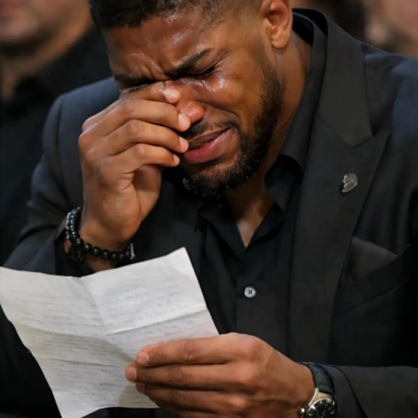 The revelation hit like a knockout punch. Anthony Joshua, visibly shaken, buried his face in his hands. Tears streamed down his cheeks as the letter continued, detailing personal anecdotes from their friendship—late-night talks about boxing strategy, shared victories, and even a promise to watch Latif rise in the sport. The arena fell silent, then erupted in sobs. Social media exploded with reactions, with hashtags like #JoshuasLetter trending worldwide. But what shocked everyone most was the letter’s closing: a revelation about a secret debt Joshua owed the family, forgiven in death.