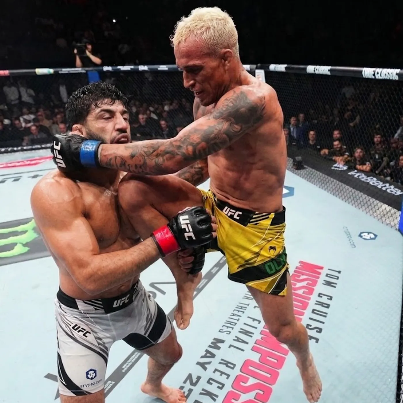 Back on the feet, Oliveira continued to dominate. His strikes carried both power and intent, each one pushing Tsarukyan further into survival mode.