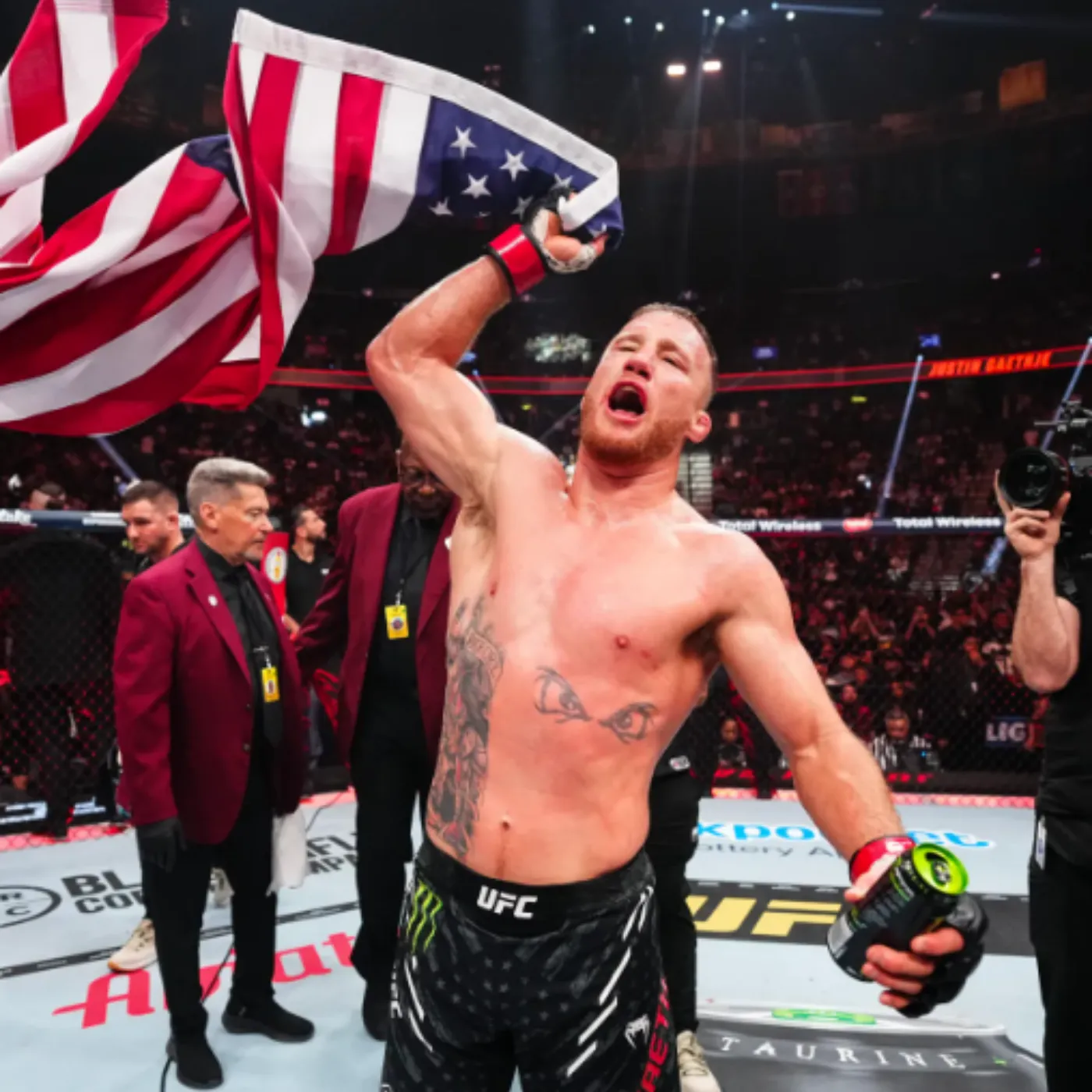With less than sixty seconds remaining, Gaethje feinted low, drawing Topuria’s guard downward. In that instant, he unleashed a perfectly timed right hook followed by a crushing uppercut. The impact was immediate and devastating. Topuria collapsed to the canvas as the arena erupted. The referee stepped in without hesitation. The Justin Gaethje knockout in the 25th minute ended the contest abruptly, leaving no doubt. Twenty-four minutes of tactical excellence dissolved in a single exchange. The image of Topuria falling will remain etched in UFC highlight reels for years. It was not merely a finish—it was a dramatic reversal of destiny.