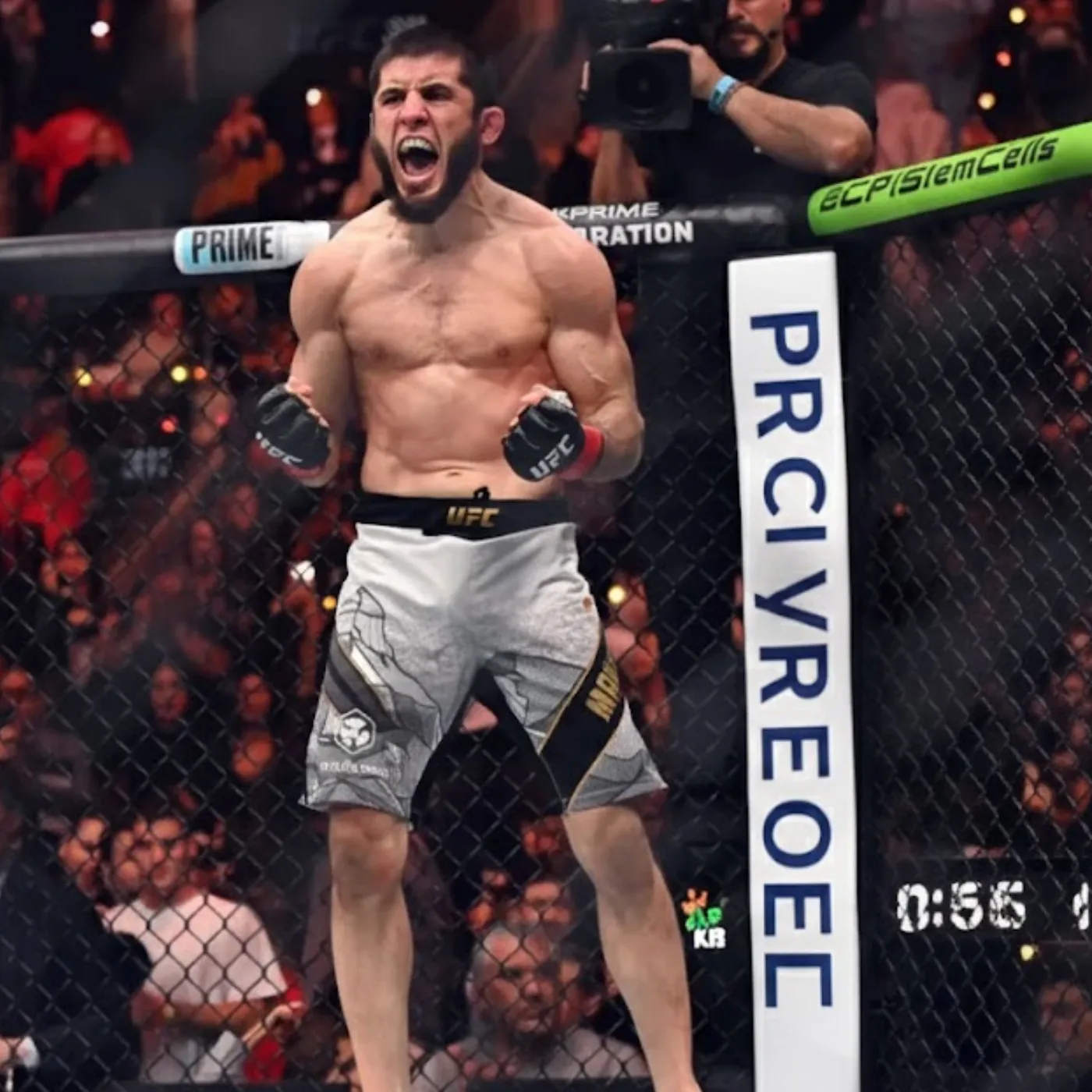 The champion’s grip was relentless, not frantic but firm. Makhachev dictated where the fight took place, forcing his opponent to react instead of initiate. Each movement drained energy and confidence. The crowd watched as momentum shifted, not through a single dramatic strike, but through a steady erosion of options. This was the beginning of the end of a reign that once seemed untouchable.