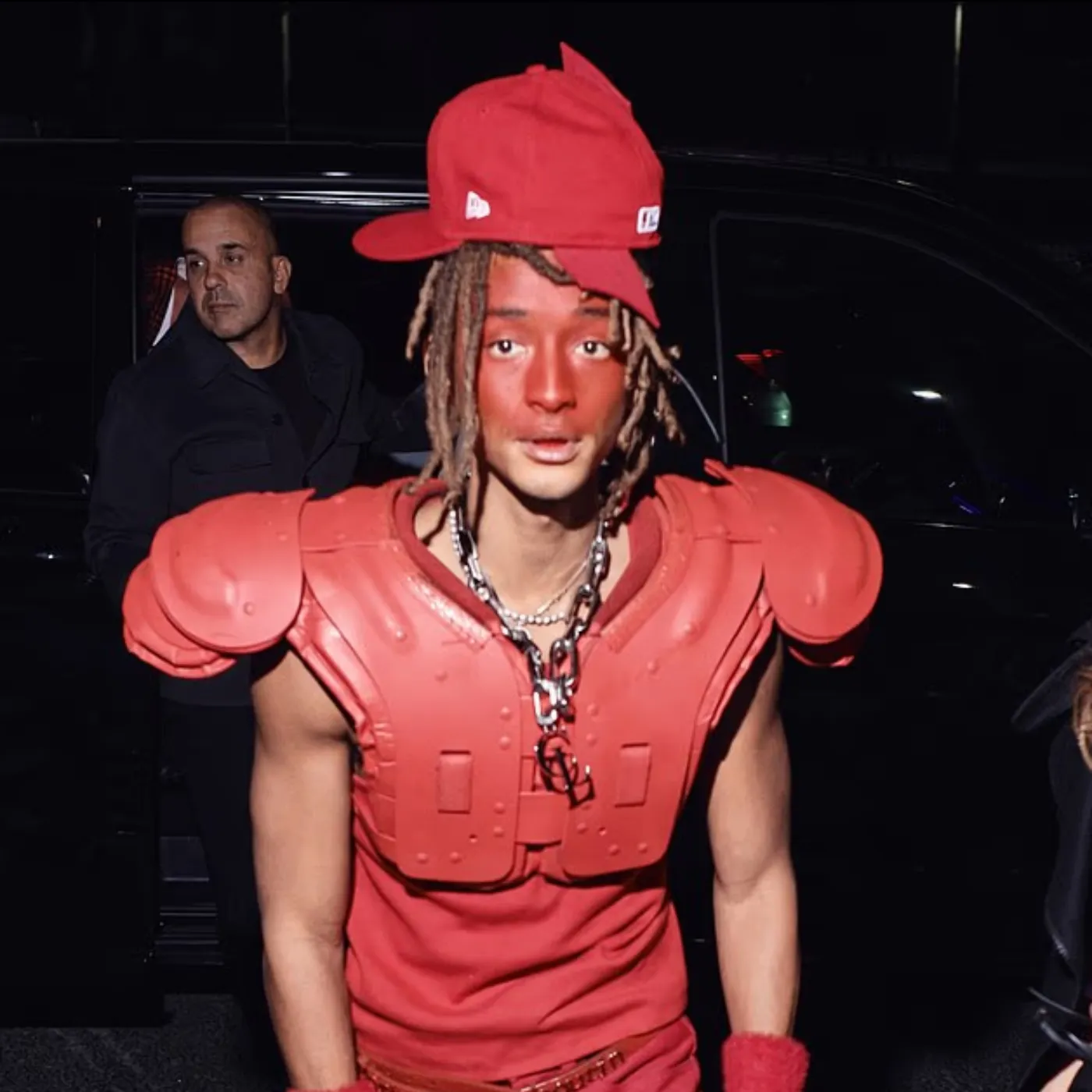Jaden Smith Stuns at Paris Fashion Week in Bold Red Football-Inspired Look