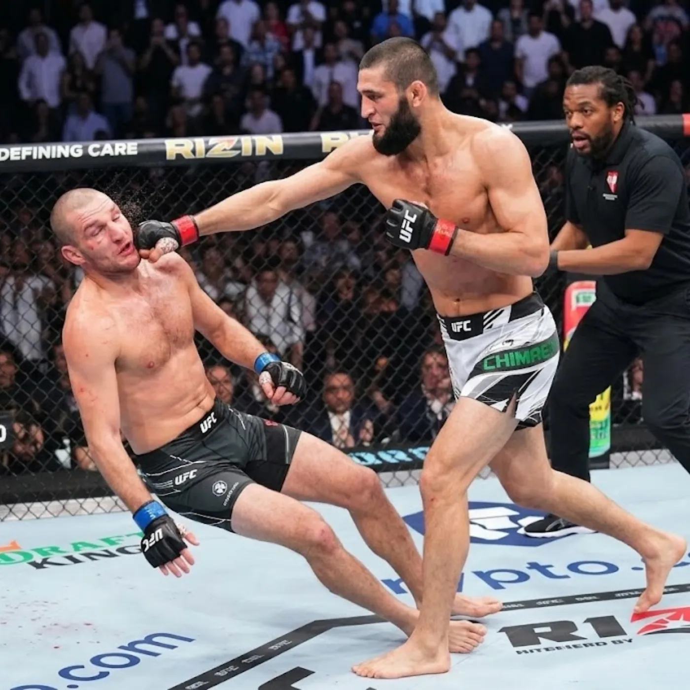 More importantly, Chimaev refused to allow Strickland any time to reset. Each exchange flowed into the next, creating a continuous wave of pressure that gradually eroded the defensive structure. The myth of invulnerability began to dissolve in real time, replaced by a growing realization that this fight was slipping out of Strickland’s control.