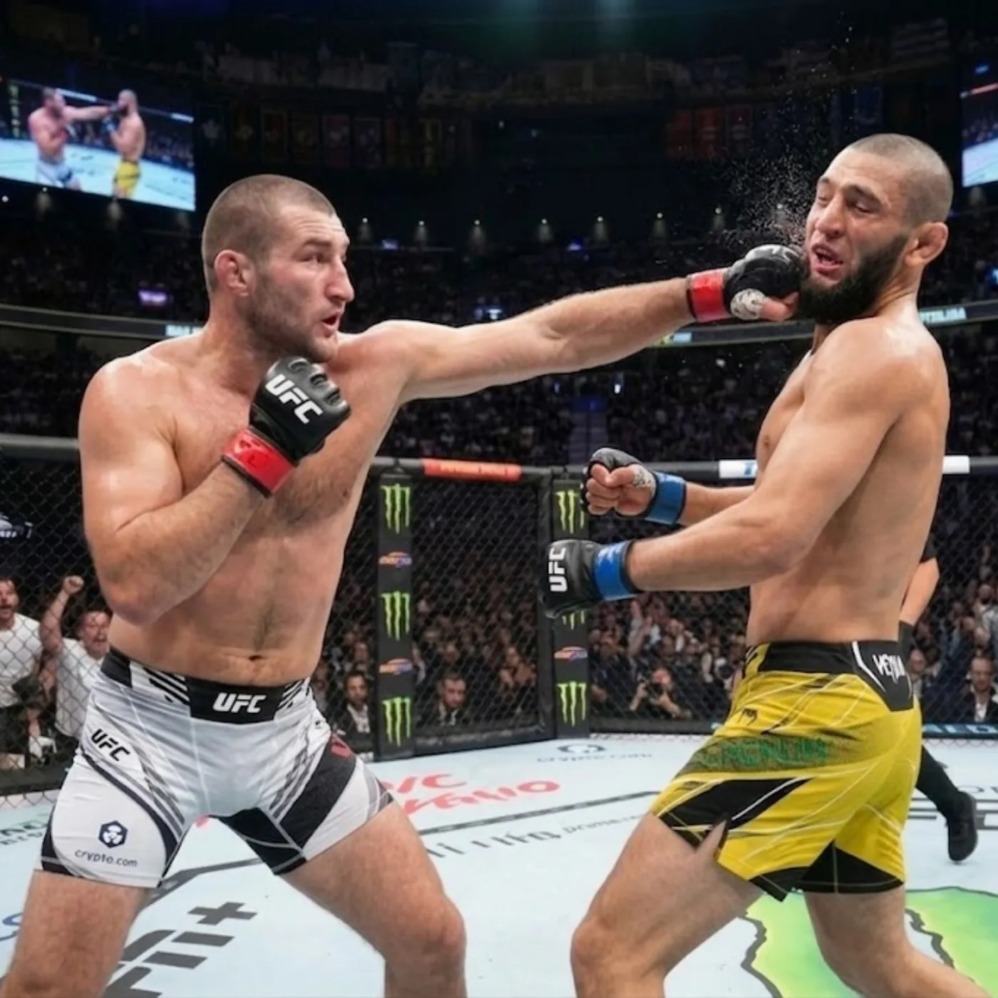As the fight began, Chimaev moved forward with his usual intensity, attempting to establish control early. His approach was familiar: close the distance, apply pressure, and dictate the pace. However, Strickland immediately disrupted that rhythm.
