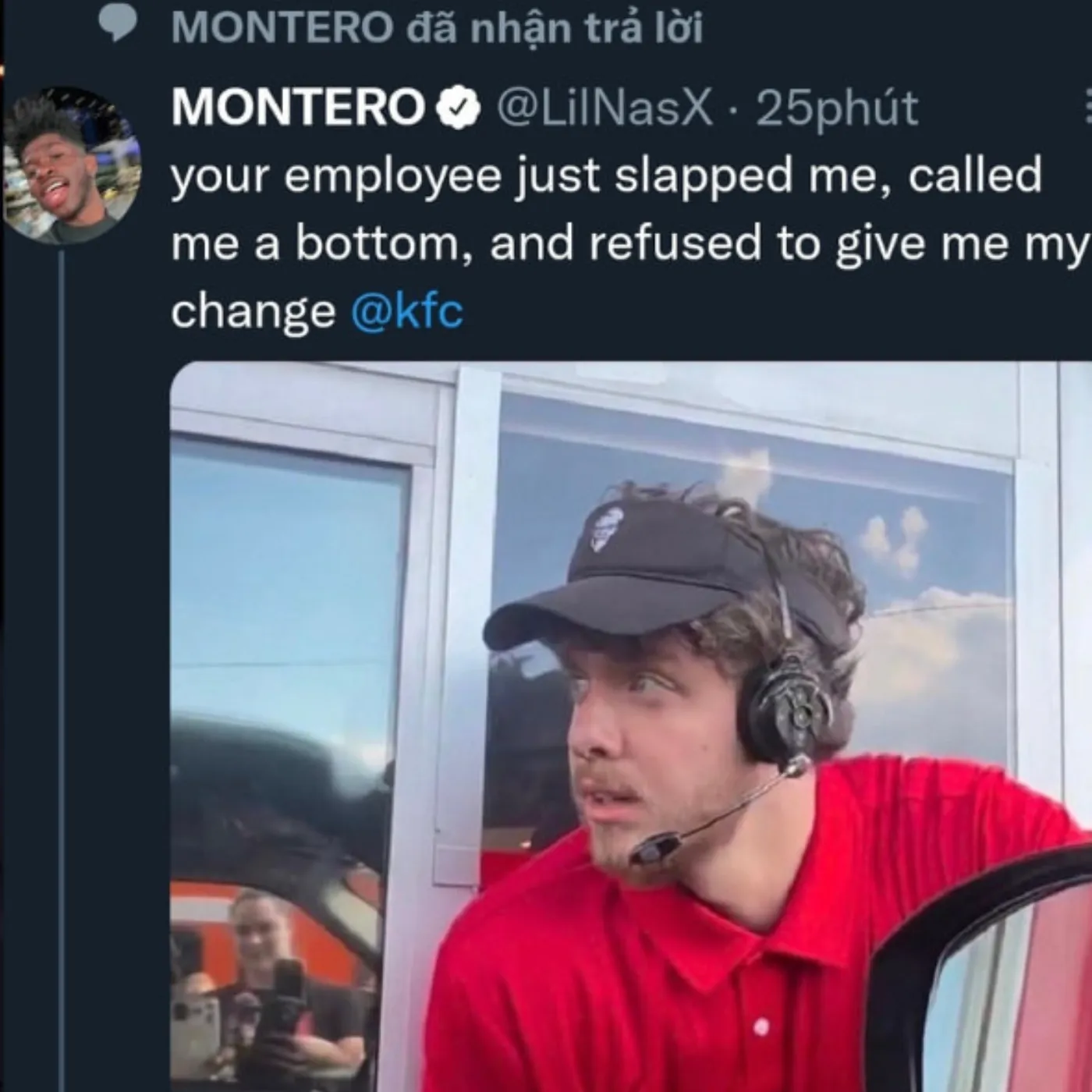 “your employee just slapped me, called me a bottom, and refused to give me my change @kfc”