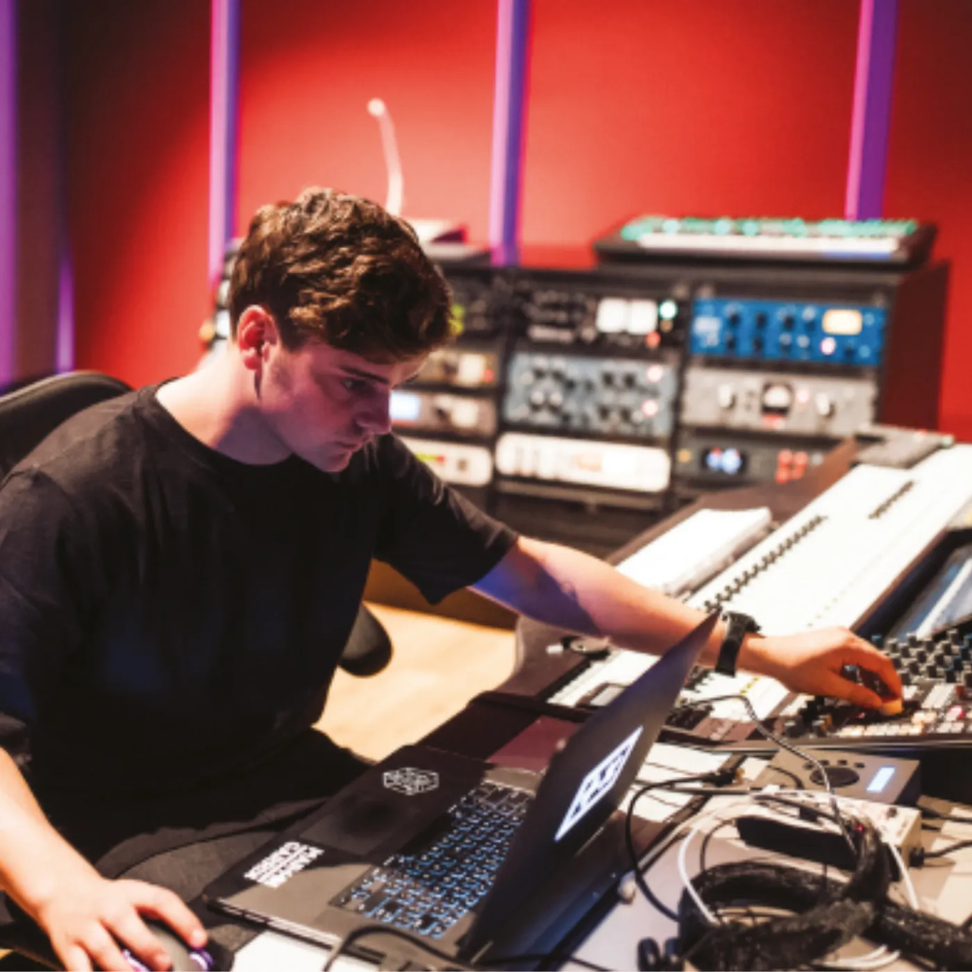 For those lucky enough to enter, the vibe is unlike any commercial studio. There’s no corporate atmosphere, no stiff professionalism — just a sense of creative chaos. Laptops, synths, and cables spill across sleek desks. One room hums with deep basslines, another echoes with vocal takes.