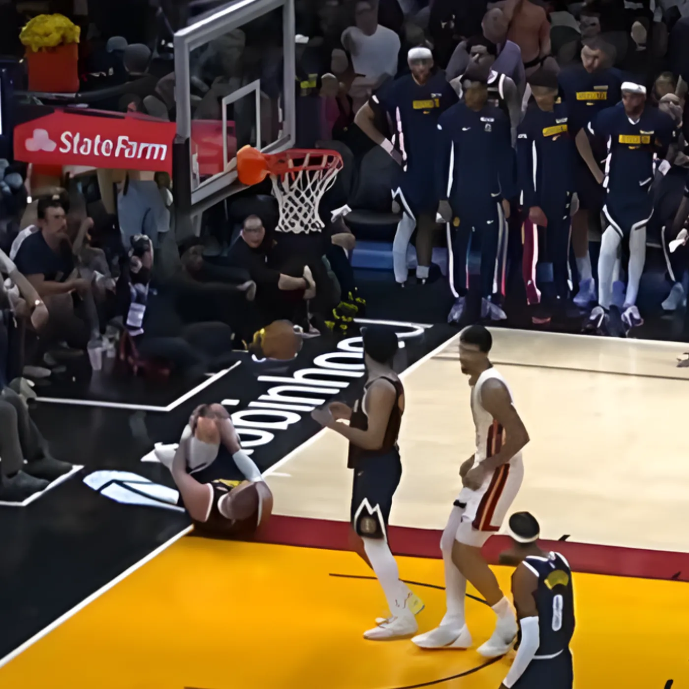 During a crucial matchup in Miami, Nikola Jokić experienced a sudden and severe knee injury. The moment occurred when a teammate inadvertently made contact with his leg during a defensive play, causing Jokić to collapse onto the court in visible pain. The reaction from the crowd was instantaneous, with fans gasping and commentators immediately highlighting the gravity of the situation. What made this incident particularly noteworthy was not only the injury itself but the response, or perceived lack of response, from certain teammates.