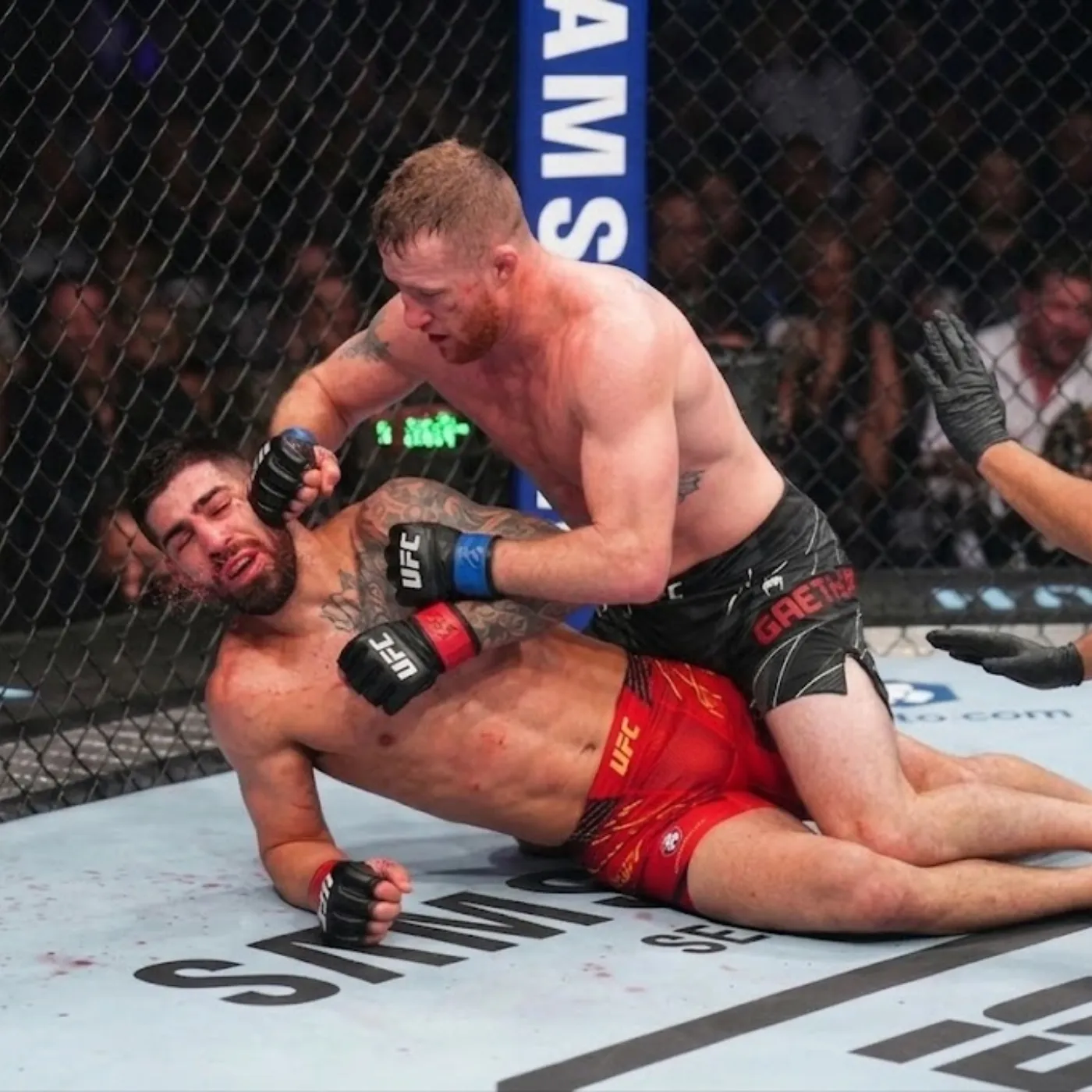 There was a subtle shift in momentum about two minutes in. Gaethje began closing the distance more aggressively, cutting off angles rather than chasing. Topuria adjusted, but the space he relied on was slowly shrinking. The tension thickened, and the audience leaned forward collectively, sensing that something significant was about to happen.