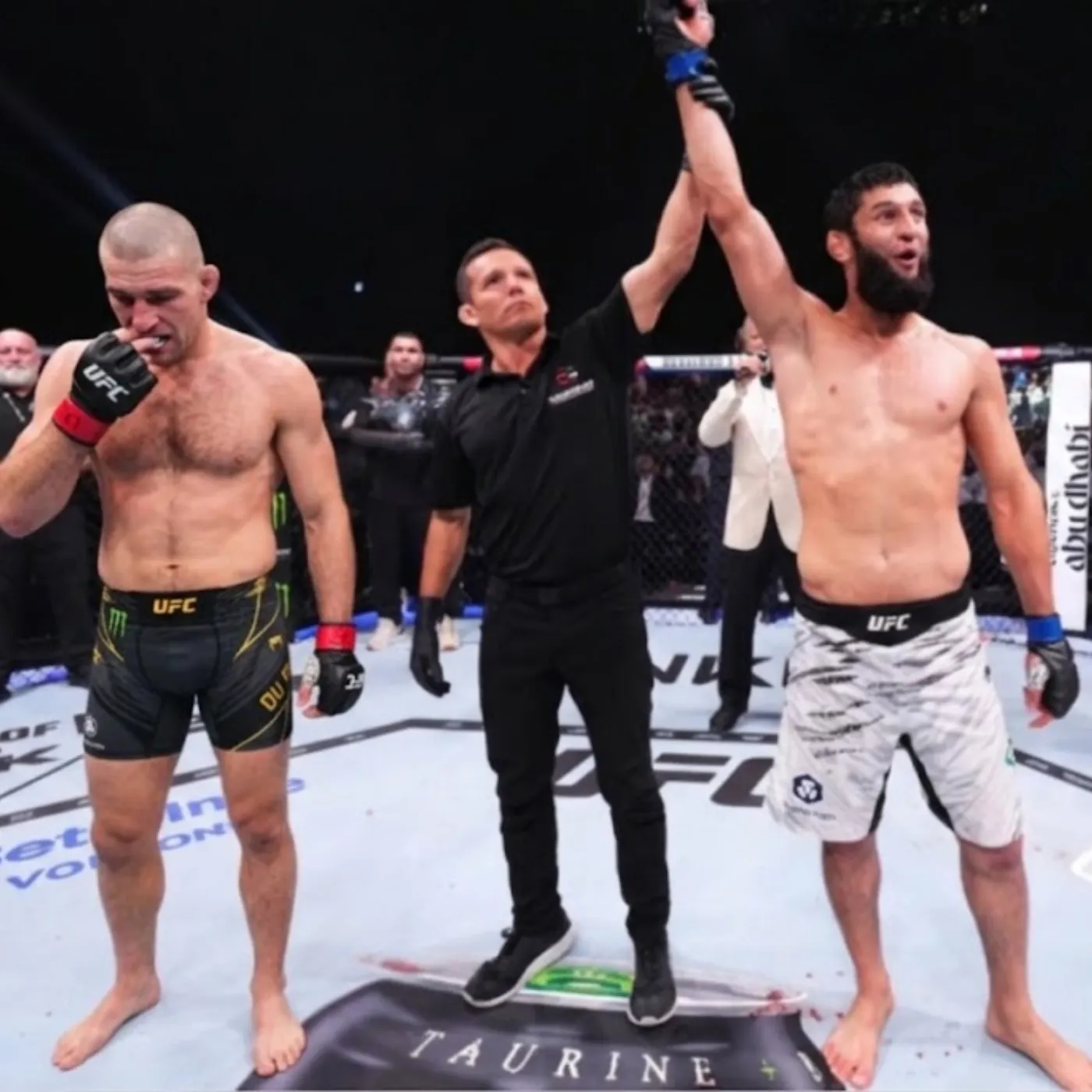 Strickland attempted to establish his rhythm, extending his jab and positioning himself to control the center. However, Chimaev’s forward pressure eliminated space, preventing any meaningful setup. The difference in intent was clear. While Strickland sought control, Chimaev sought domination.