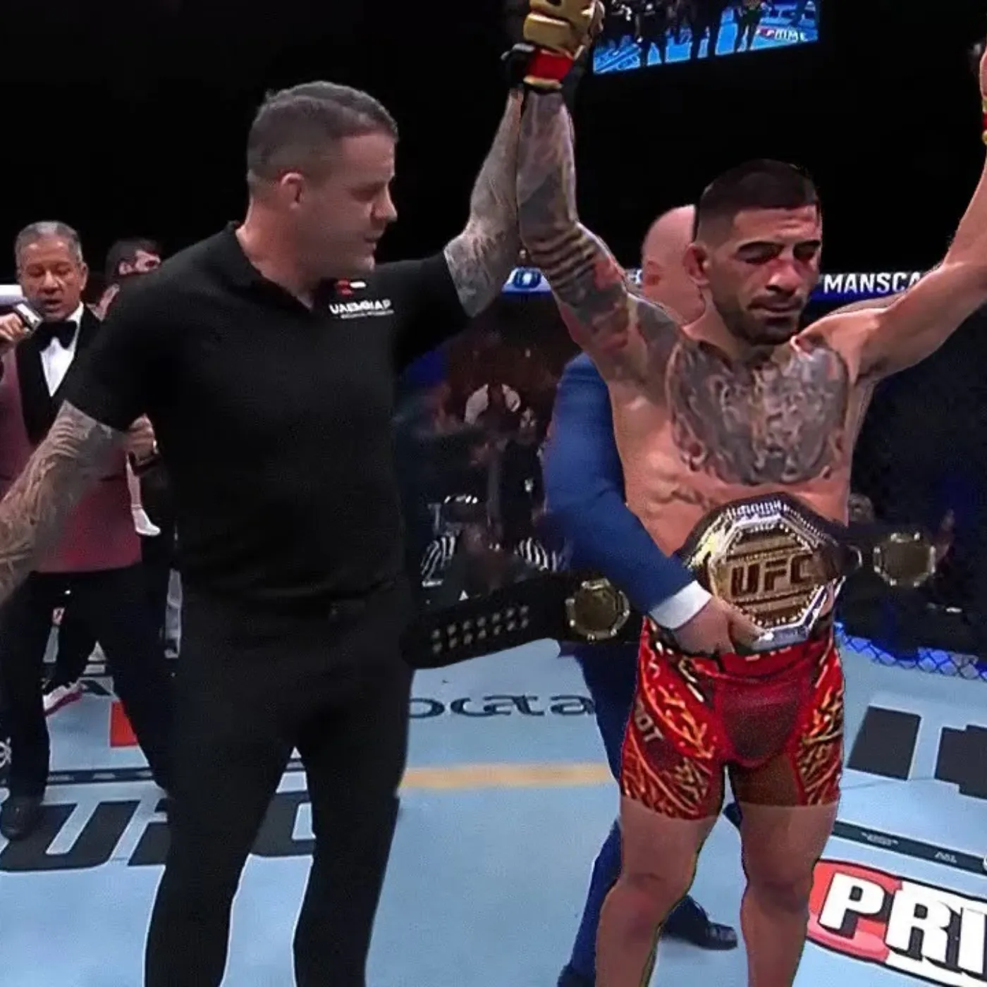 The finishing sequence unfolds not as chaos but as culmination. Preparation, belief, and opportunity align within a narrow window, and Topuria commits without hesitation. The result is sudden yet strangely inevitable, as though the entire build up pointed toward this single irreversible instant. Five minutes that began with caution end with finality.