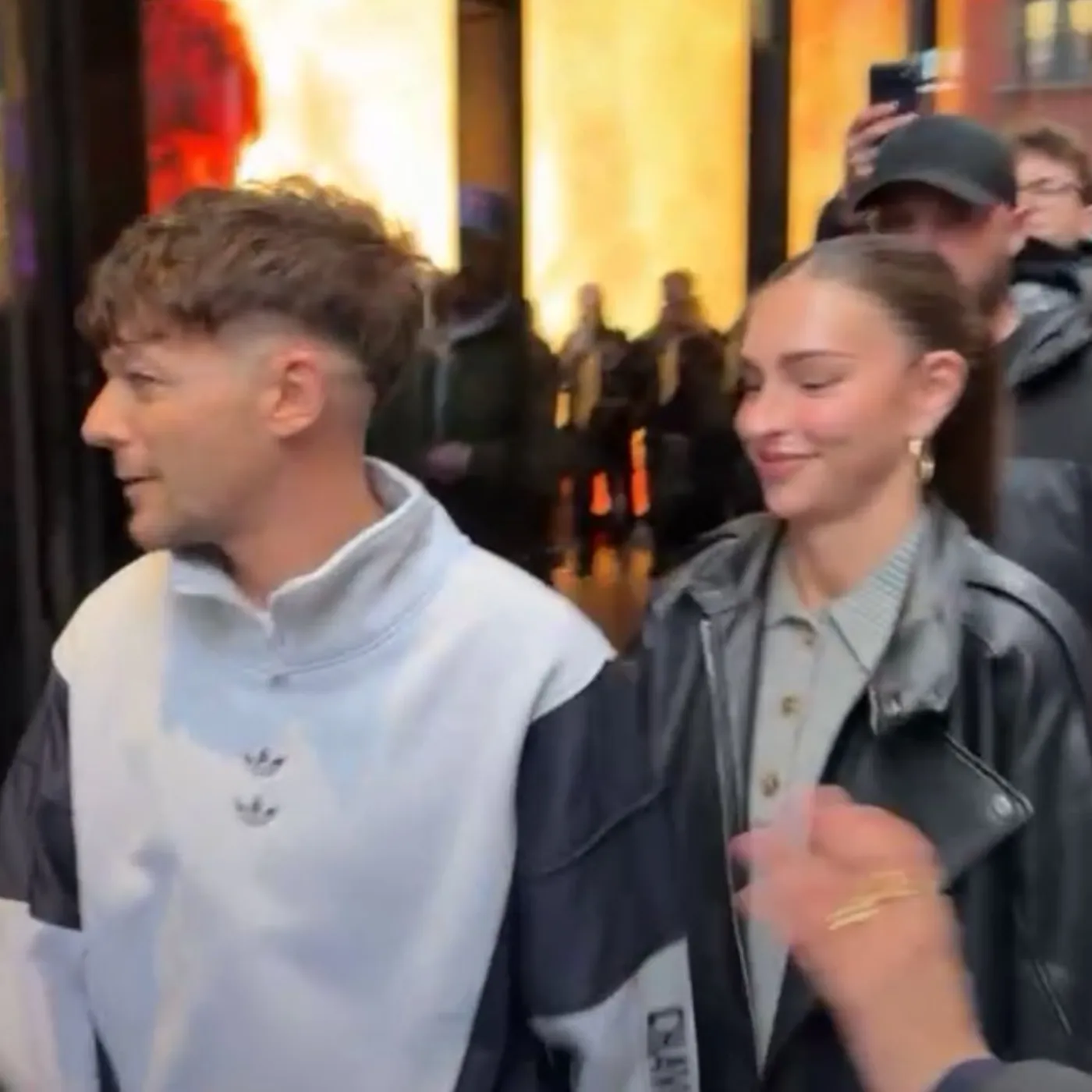On that evening, the city felt less like a stage and more like a witness. Louis Tomlinson moved through the streets with a quiet confidence that suggested balance. This was not the guarded composure of someone managing expectations. It was the natural posture of someone comfortable with where he stood. Zara McDermott, walking beside him, seemed to share in that calm, creating a shared rhythm that matched the pace of the city itself.