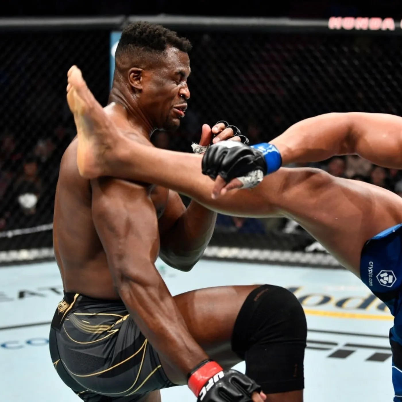 Then came the turning point — a counter-right hook that Gane had been setting up quietly, nearly invisible in its intent until it detonated. Ngannou’s legs wobbled. Not broken, but undeniably shaken. The crowd reacted as if lightning struck through the roof. This wasn’t luck. This wasn’t desperation. This was mastery.