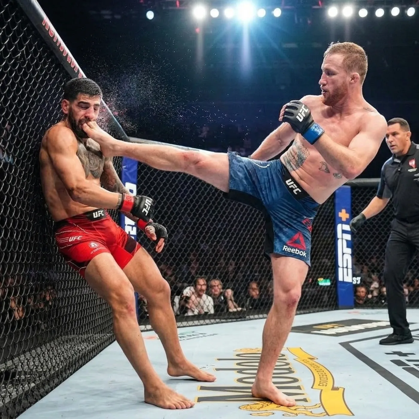There are moments in combat sports that seem to exist outside the normal rhythm of competition, moments so abrupt and so violent that they fracture expectation itself. On a night that was supposed to reinforce dominance and confirm the continuation of a rising empire, everything changed in the blink of an eye. The arena pulsed with anticipation as Ilia Topuria entered with the aura of inevitability surrounding him, a fighter widely viewed as unstoppable, precise, and composed under pressure. Across from him stood Justin Gaethje, a man long respected for his relentless aggression but often cast in the role of the dangerous challenger rather than the defining champion.