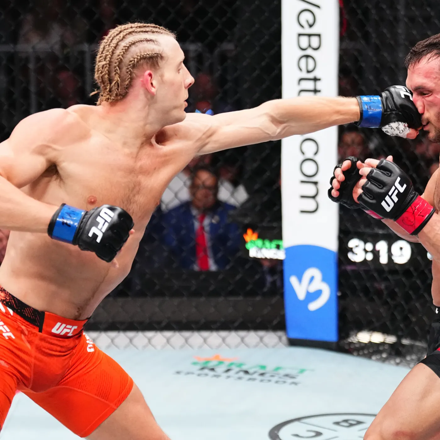 The fight began with an intense exchange of strikes, as both fighters showcased their elite-level skills. Topuria, known for his precise counters and relentless pressure, seemed prepared for every challenge Pimblett threw at him. From the opening bell, the fight carried the tension of a championship bout, with both athletes demonstrating exceptional conditioning, strategy, and heart. Pimblett, however, quickly established his pace, using his unorthodox angles and aggressive combinations to unsettle the previously undefeated champion.