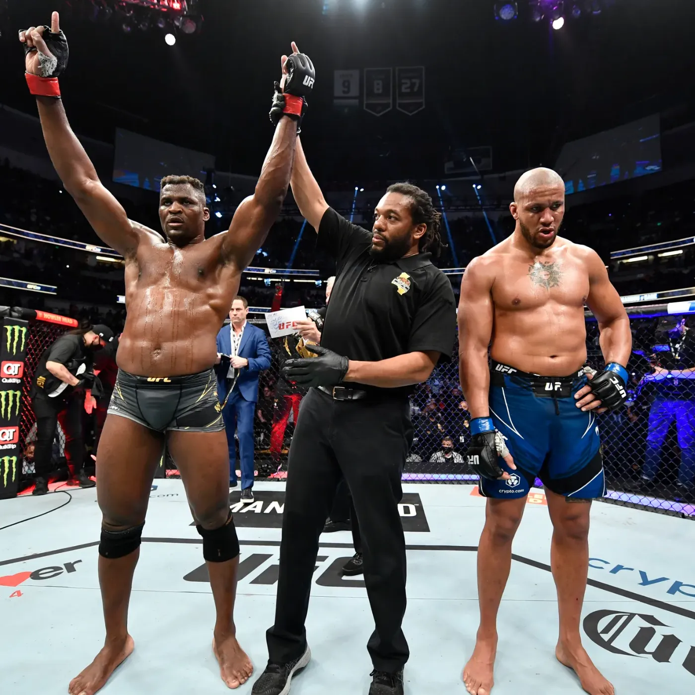 As the referee stepped in, the crowd erupted, then slowly settled into a stunned hush. Francis Ngannou stood victorious, his expression a mixture of relief and quiet satisfaction. He did not celebrate excessively. There was no need. His performance spoke louder than any gesture. Across the cage, Ciryl Gane absorbed the reality of defeat with dignity, a testament to his character even in disappointment.