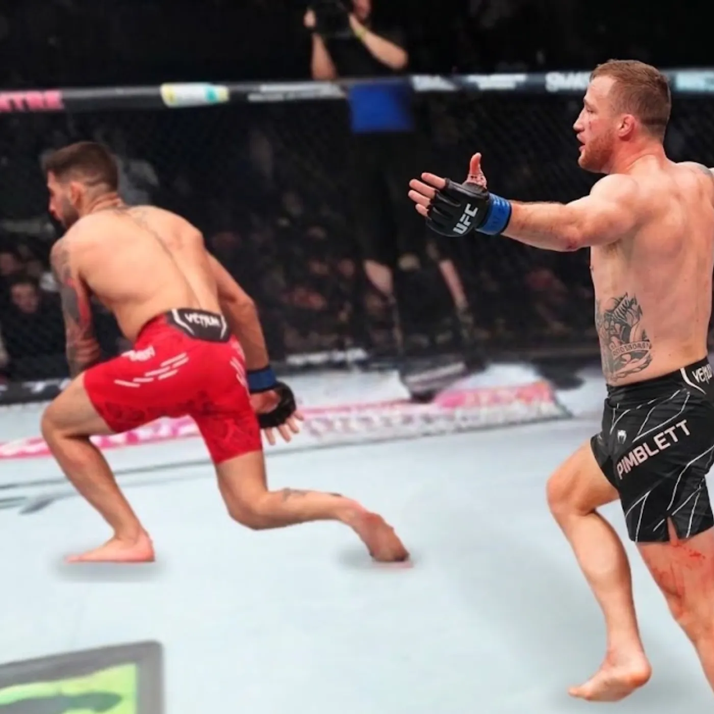 For the first minute, the fight looked like the chess match analysts had predicted. Topuria’s technical boxing against Gaethje’s brutal pressure. Each man searching for weaknesses.
