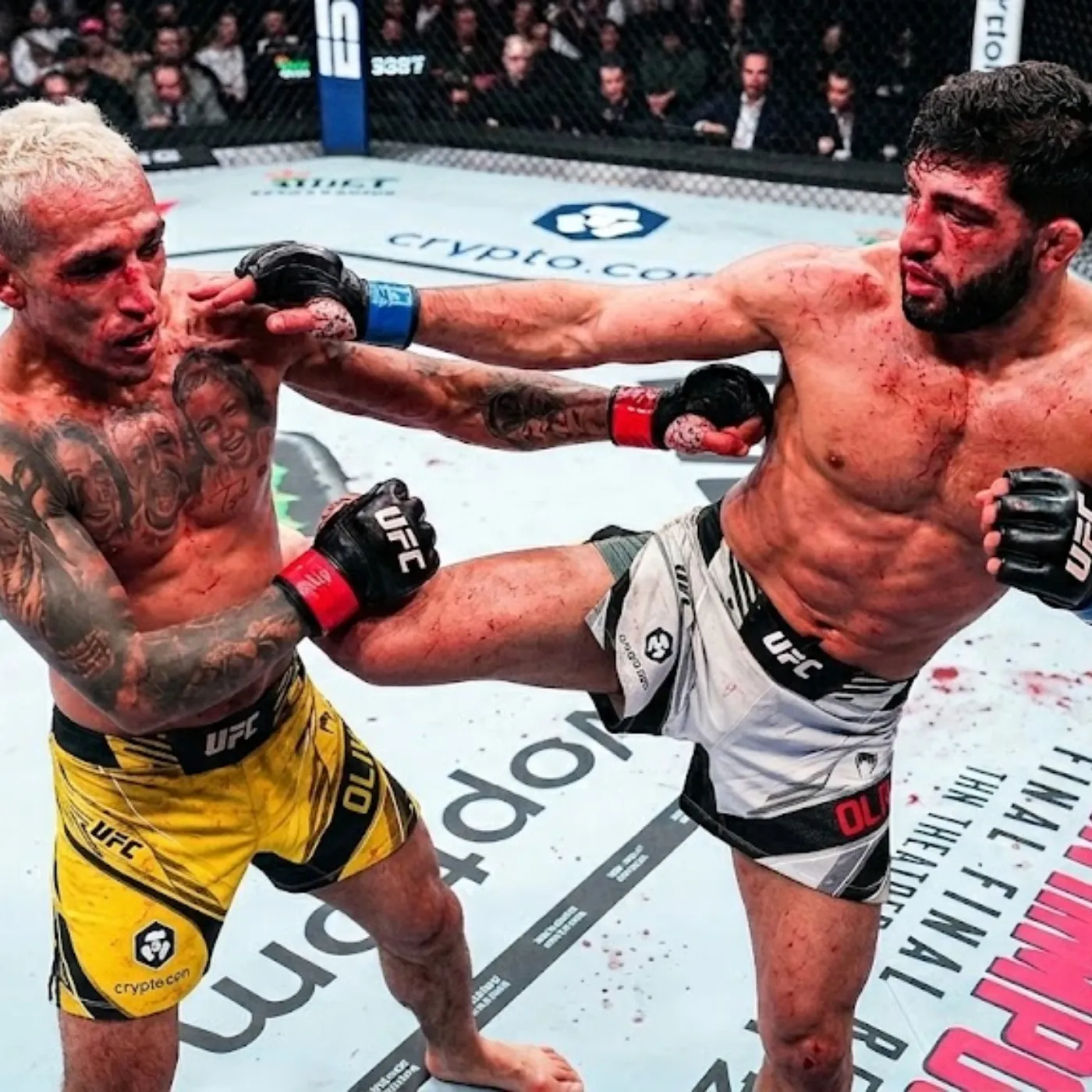 Charles Oliveira, known for his willingness to engage early, did not retreat. Instead, he met the pressure head-on, initiating exchanges that immediately electrified the arena. For a brief moment, it seemed as though the fight might unfold in familiar fashion, with Oliveira drawing his opponent into dangerous territory.