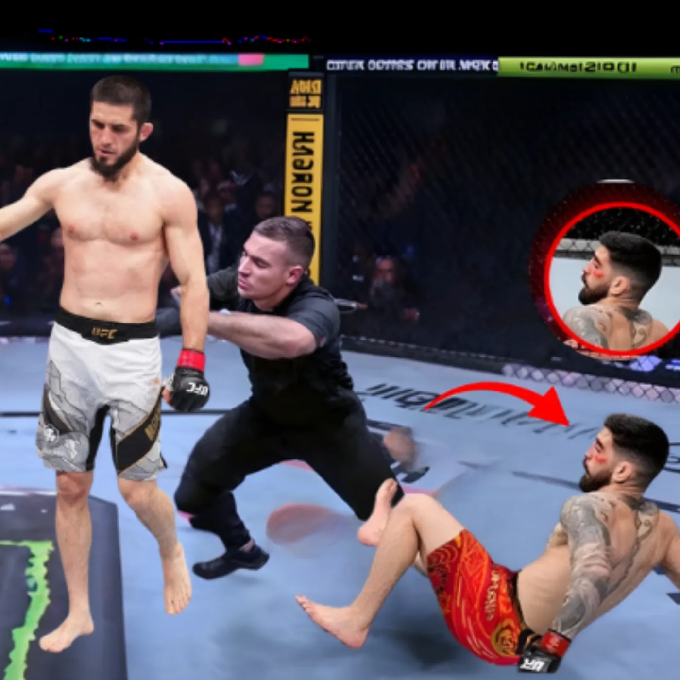 The moment the arena lights dimmed and the crowd rose as one, it was clear this was not just another championship bout. This was a collision of two dominant forces, two belief systems, and two undefeated mentalities marching toward the same unforgiving destination. When Islam Makhachev stepped into the Octagon to face Ilia Topuria, the narrative was already heavy with inevitability, pressure, and expectation. One man represented the continuation of an ironclad rule. The other symbolized disruption, ambition, and a fearless challenge to the established order. By the end of the night, only one truth remained standing, and it arrived in the form of a brutal one-shot knockout that echoed across the sport.