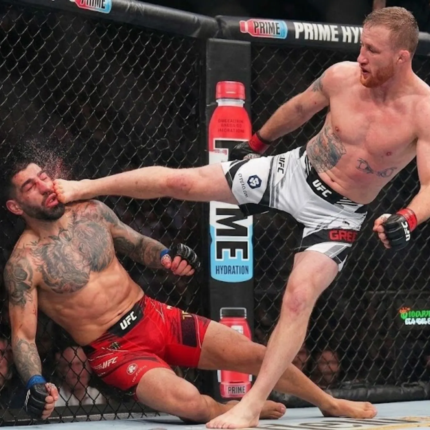 For the first time in the fight, Topuria appeared visibly shaken. His feet hesitated for a split second as he tried to regain balance. Gaethje recognized the opportunity immediately.
