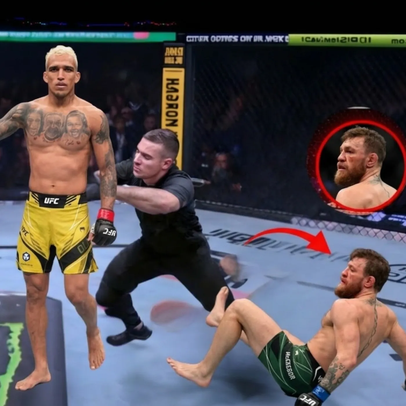 Oliveira slipped the incoming strike with precision, creating an opening that existed for only a fraction of a second. In that instant, he unleashed a counter that would echo throughout the sport. His right hand connected cleanly, snapping McGregor’s head back and sending a shockwave through the arena.