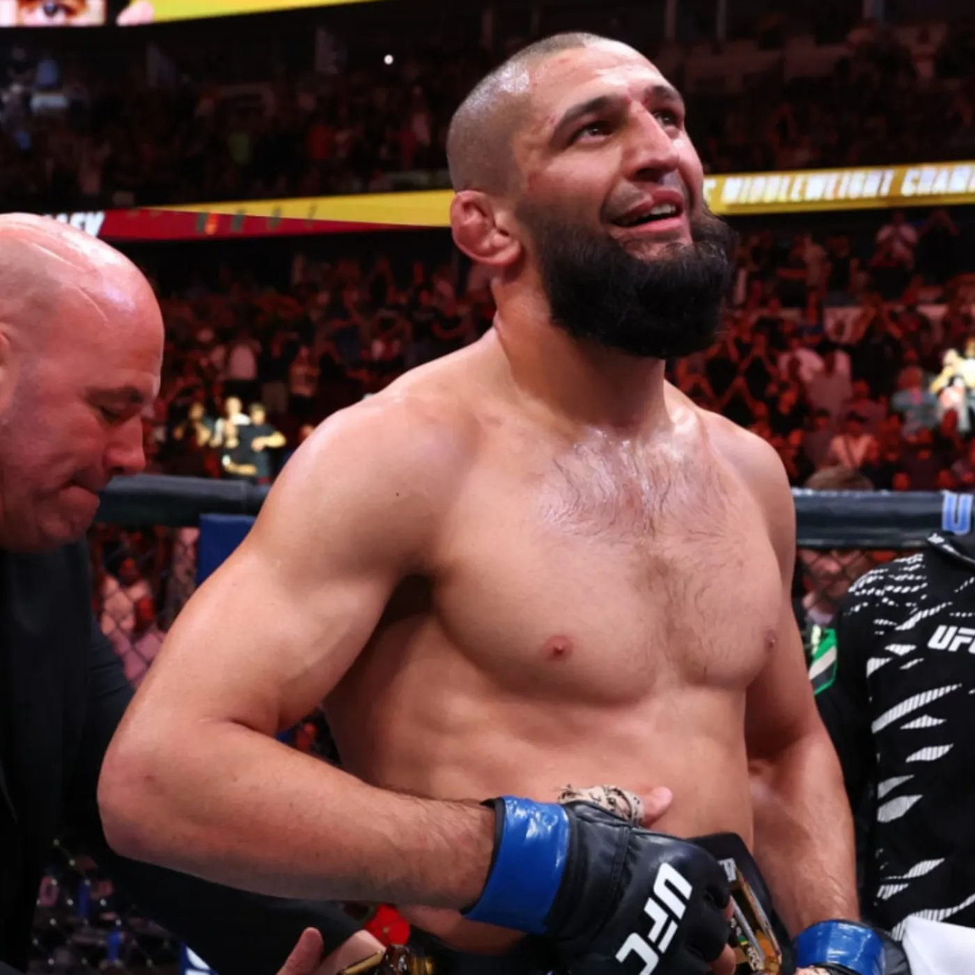 The arena lights dimmed, but the energy only intensified as a sold-out crowd buzzed with anticipation for one of the most talked-about clashes in modern mixed martial arts. Fans knew they were about to witness a collision of styles unlike any other: the relentless pressure of Khamzat Chimaev against the devastating striking of Alex Pereira. The atmosphere felt almost cinematic, as if the sport itself had paused to watch what would happen when a grappling predator met a knockout artist under championship stakes. Chants echoed through the stadium, camera flashes flickered like distant lightning, and the sense of inevitability hung in the air. This wasn’t just another bout on a crowded fight card; this was a narrative years in the making. Both men carried reputations that bordered on myth, and under the metaphorical full moon, only one would walk away with his aura enhanced while the other would leave behind questions, damage, and a shaken division.