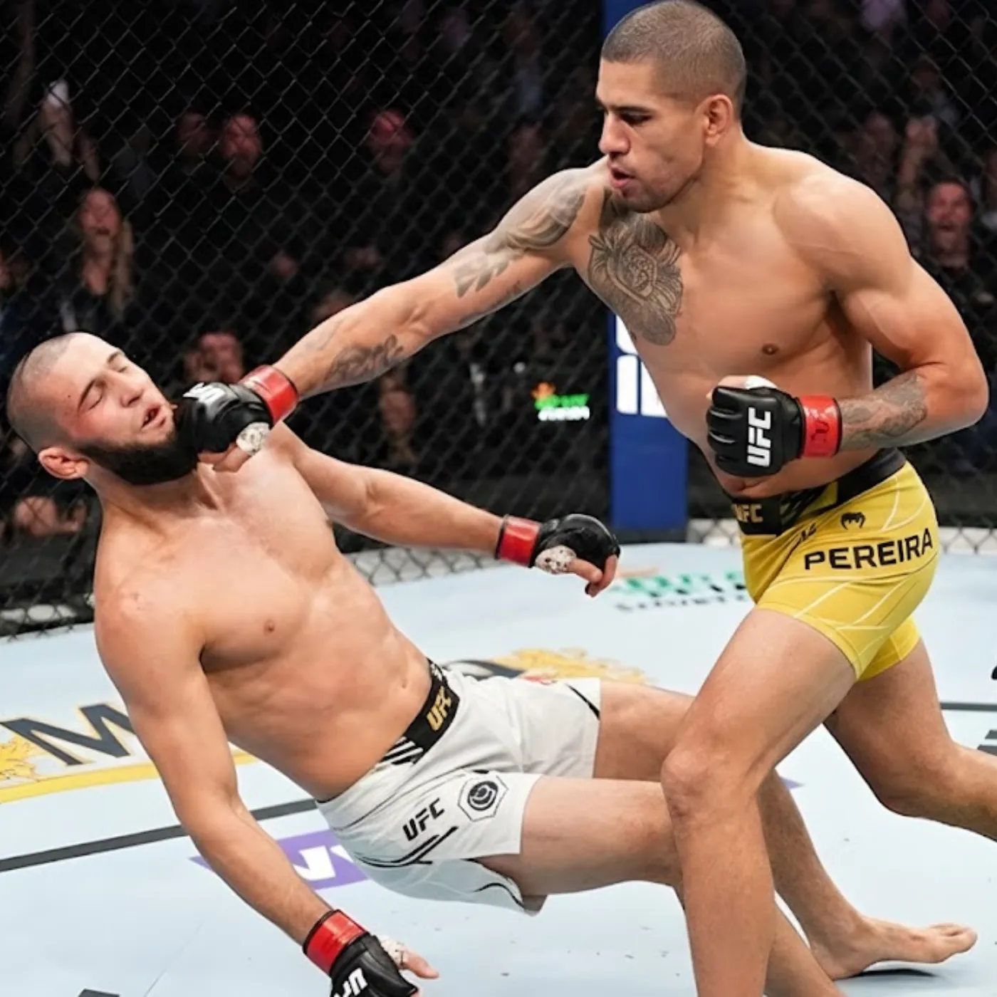 Across the cage, Khamzat Chimaev was being attended to, conscious but clearly shaken. His aura of invincibility had taken its first undeniable crack.