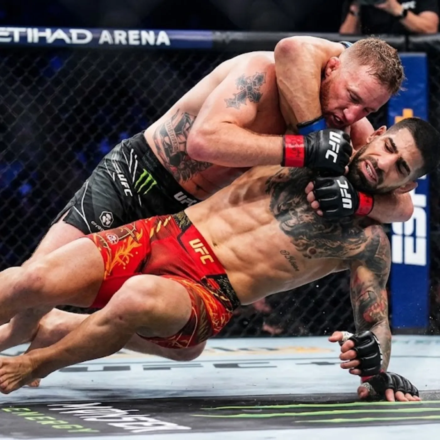 The arena was already vibrating with anticipation long before the fighters made their walk. Fans from every corner of the world had gathered, not just to witness a fight, but to experience a collision of two unstoppable forces. On one side stood Justin Gaethje, the embodiment of chaos and relentless aggression. On the other stood Ilia Topuria, the rising star whose confidence and precision had turned him into one of the most feared competitors of his generation.
