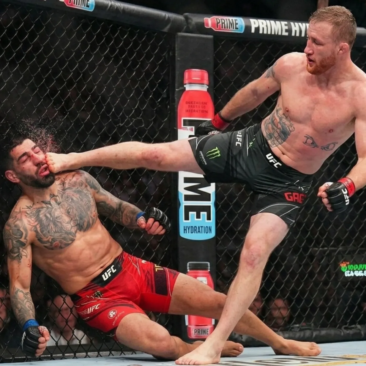 But Gaethje refused to allow that rhythm to develop. He disrupted timing with unpredictable bursts of aggression, mixing in uppercuts, hooks, and relentless pressure against the cage. The fight quickly transformed into the kind of brawl where comfort zones cease to exist.